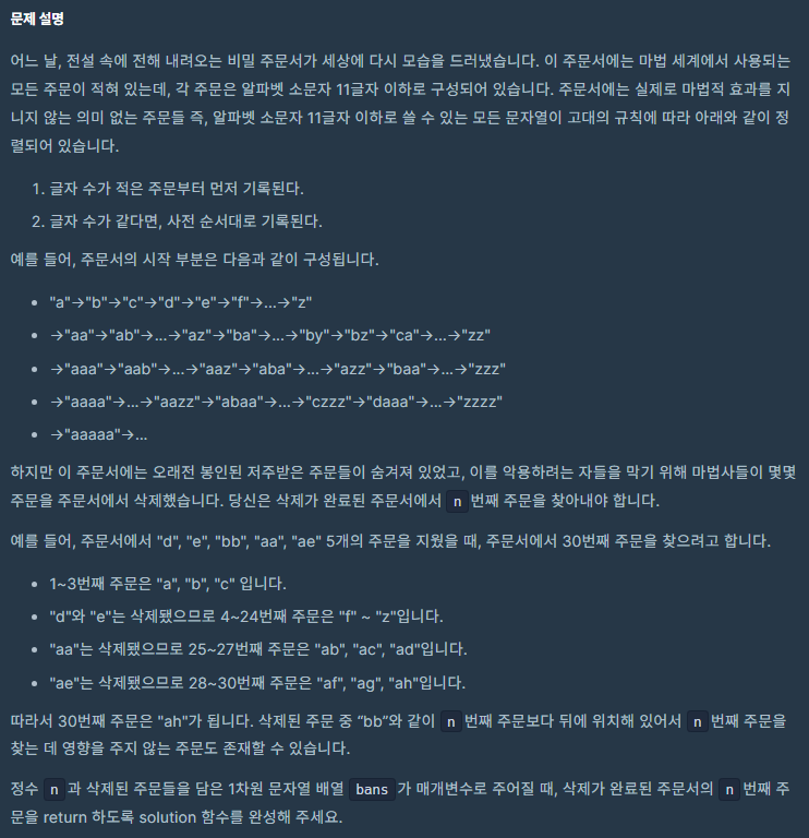public String solution(long n, String[] bans) {